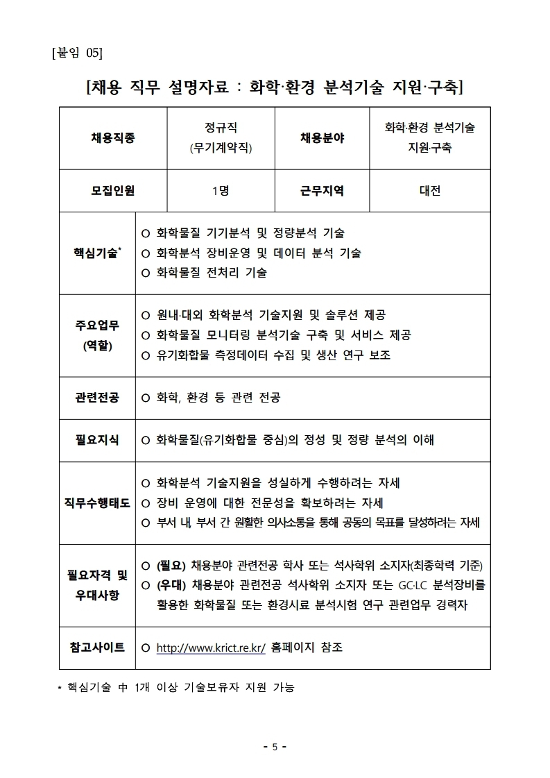한국화학연구원 정규직 채용 공고(화학/환경분석분야)