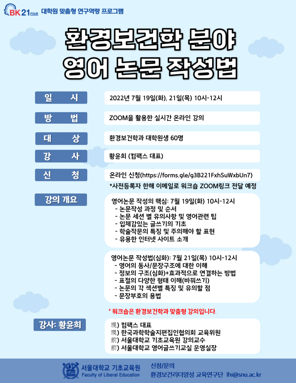 환경보건학 분야 영어논문 작성법 온라인 워크숍