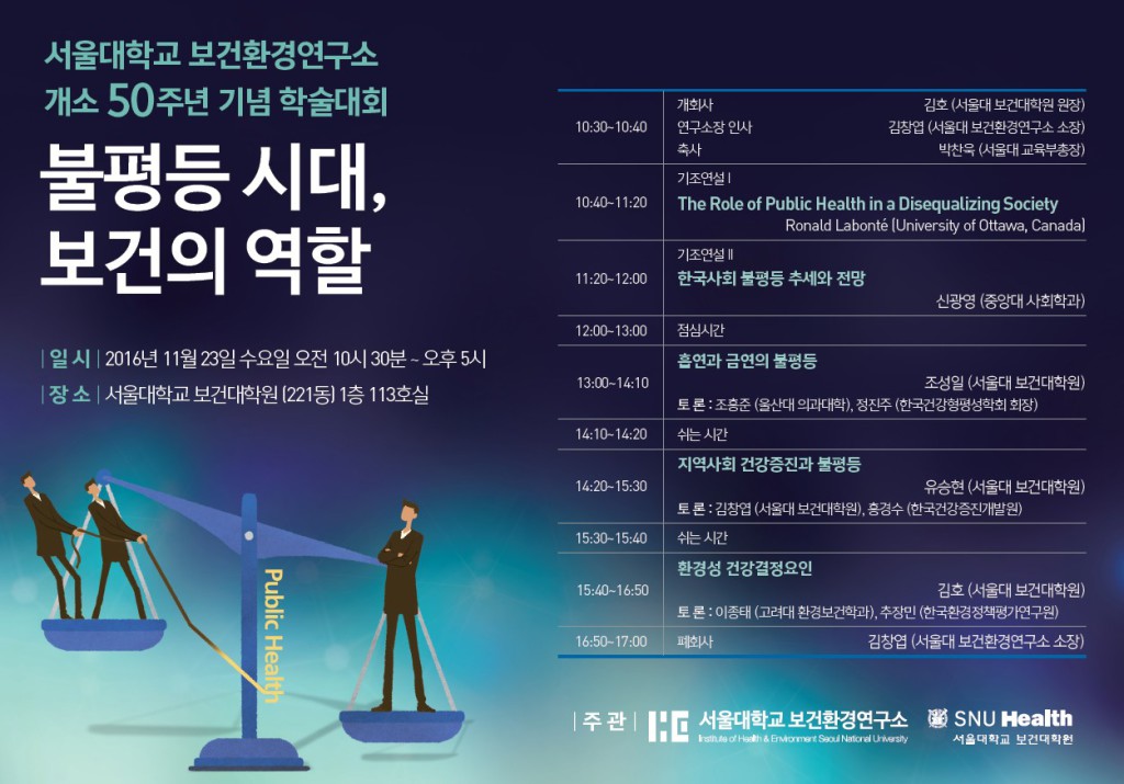 이번 학술대회는, 불평등 시대에 보건학이 어떤 역할을 해야 하는지에 대해